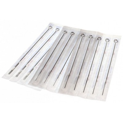 Disposable pre-soldered high quality steel needles. Sterilized with eo gas in individual single pack. Available in 5 pcs packs and 50 pcs box.